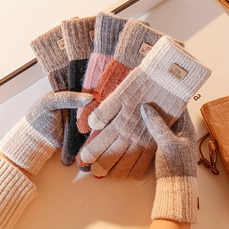 1 Pár Téli Érintőképernyős Kötött Kesztyű, Unisex