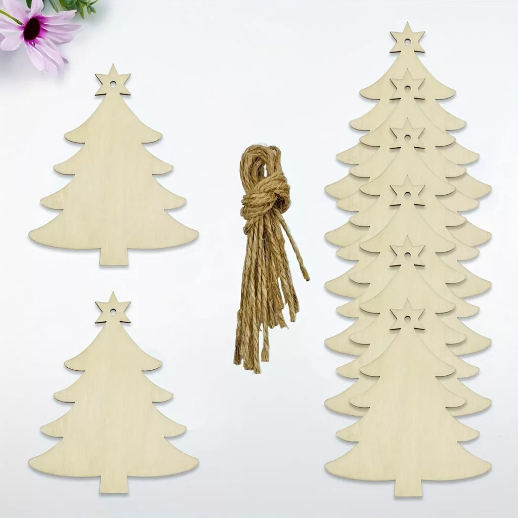 10db Természetes Fa DIY Karácsonyfa Kézműves Készlet Akasztóhurokkal
