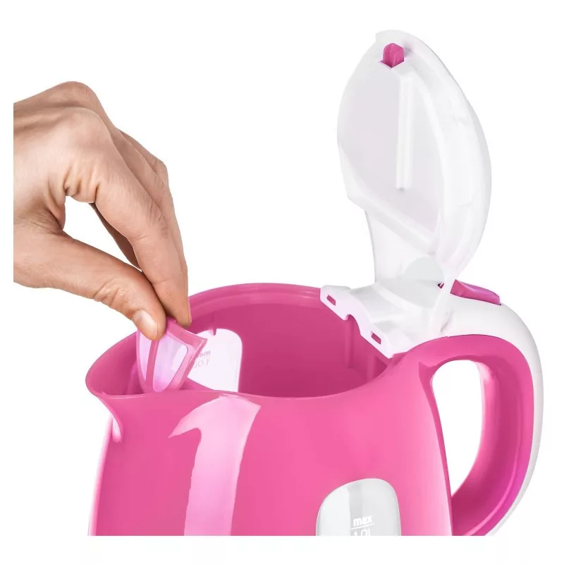 A vízforraló 1100 W teljesítményének köszönhetően gyorsan forralja fel a vizet. Az 1 literes kapacitása révén ideális választás 1-2 személyes háztartásokba, valamint a beépített szűrő könnyen és egyszerűen eltávolítható, tisztítható. A vízforraló két oldalán vízjeles mérték segíti a felhasználót. A beépített kiváló minőségű rozsdamentes acélból készült rejtett fűtőszál nem melegíti fel a körülötte lévő levegőt, mint a különböző főzőlapok esetén, csak a vízforraló tartalmát. Számos biztonsági funkció érhető el, mint a túlmelegedés elleni védelem vagy víz nélküli bekapcsolás lehetősége.