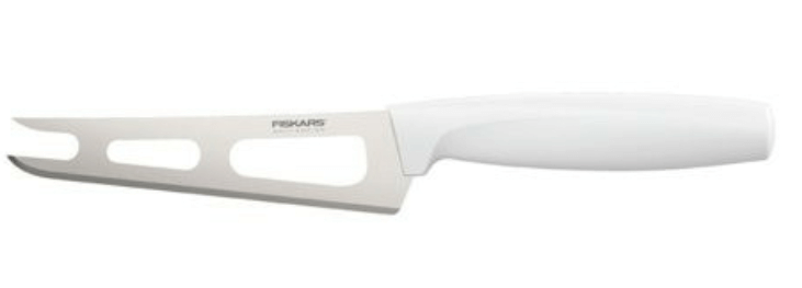 Ez a Fiskars sajtvágó ergonomikus rozsdamentes acél pengével van ellátva. A pengéjéhez a lyukas kialakításának köszönhetően nem tapad a sajt, és a kemény sajtokat is könnyű vele vágni. Nem kell többet a kis konyhai késeddel szenvedni. Nincs több hozzátapadt sajt a késhez, így egyenlő szeleteket tudsz majd vágni abból. Műanyag fogásának köszönhetően kényelmes lesz a használata.