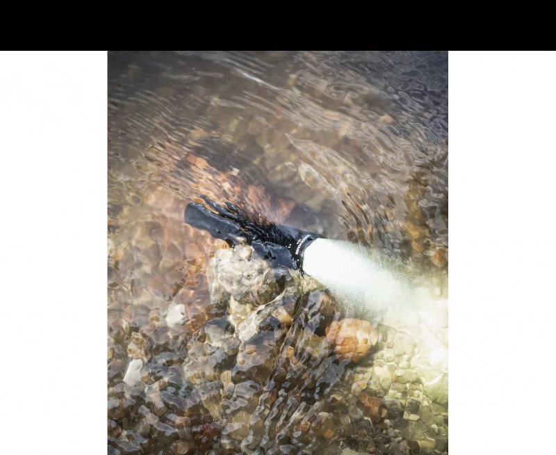 Teljes védelem a víz, szennyeződés és por ellen az IP68 szabványnak megfelelően – a zseblámpa 25 méteres mélységben is tovább működik, akár 5 órán keresztül. Ellenáll a 10. emeletről történő lezuhanásnak.