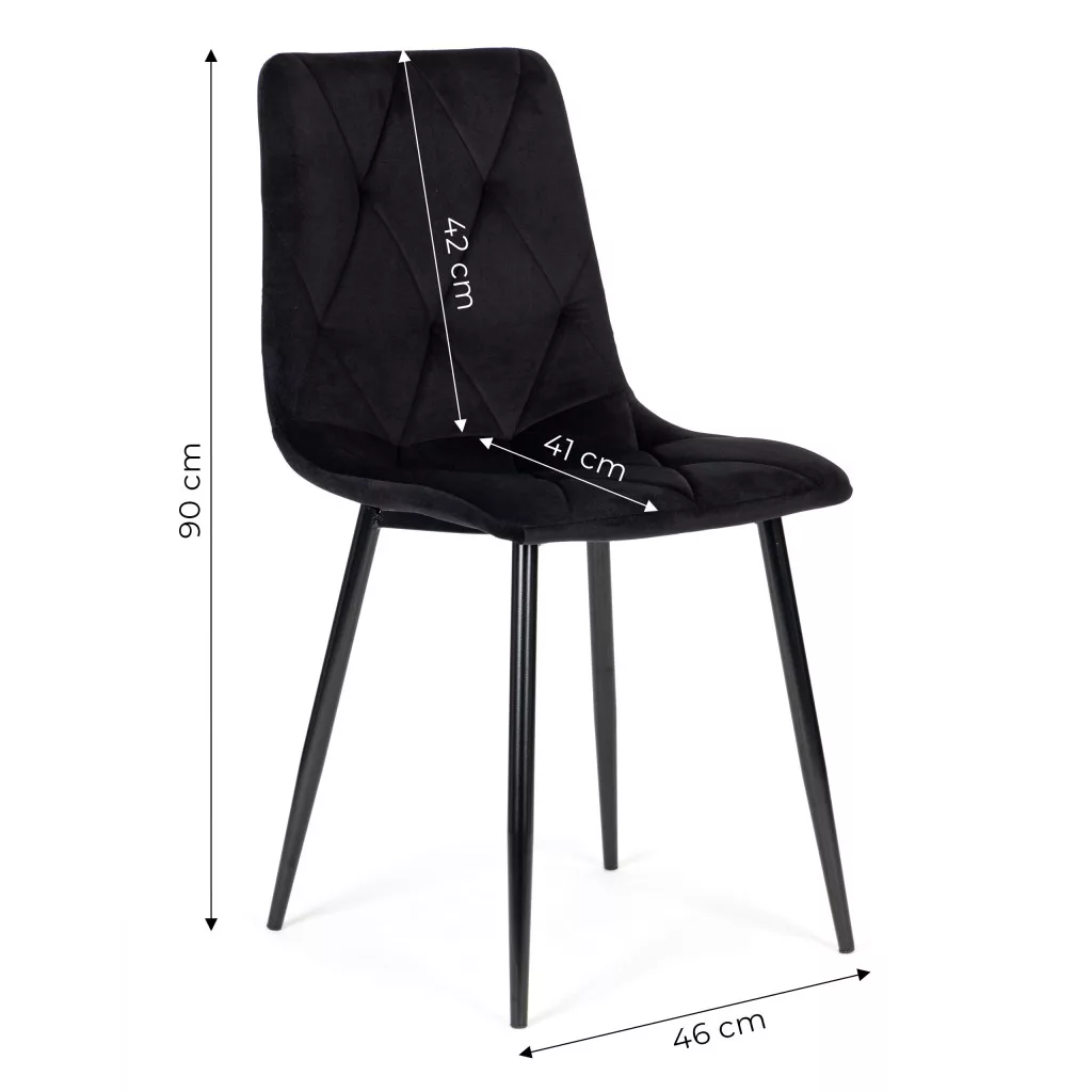 A székek tökéletesen illeszkednek a családi asztalhoz az étkezőben, nappaliban vagy akár a konyhában is. A fekete kárpit strapabíró bársonyból készült, a letisztult forma pedig minden helyiségnek stílusos megjelenést ad. Remekül mutatnak a nappaliban, étkezőben, irodában vagy akár éttermi környezetben is. A modern dizájn és az egyedi forma a legigényesebb felhasználók számára is tökéletes választás.