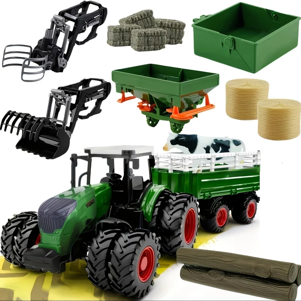 Farm Traktor Játékszett Pótkocsival – 1:24 Méretarány, 42 cm-es Kézi Működtetésű Járművek Gyerekeknek