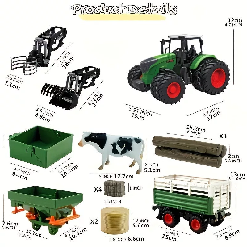 - (Méret és skála) Valósághű méretarány: 1:24 méretarányú modell, amely pontosan visszaadja a valódi traktorok részleteit.