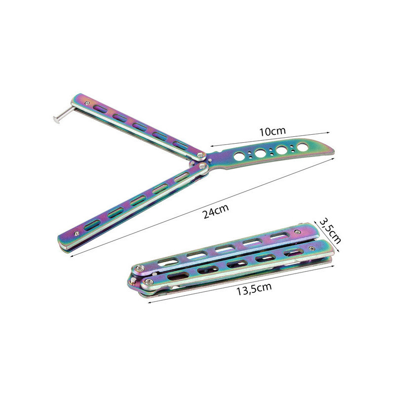 Fejleszd trükkjeidet biztonságosan ezzel a tompa pengéjű pillangó edzőkéssel, amelyet kifejezetten gyakorlásra és trükkök tanulására terveztek. A rozsdamentes acél kialakításnak köszönhetően strapabíró és tartós, míg a tompa penge garantálja a biztonságos használatot, akár teljesen kezdőként is.