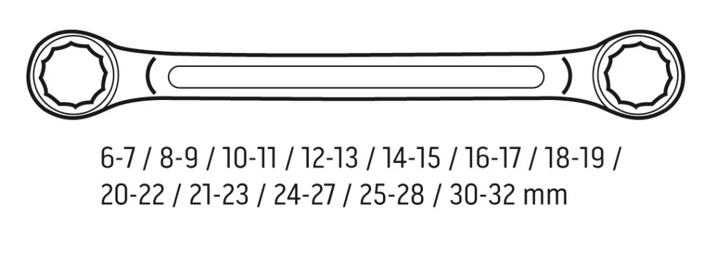 NEO hajlított csillagkulcs készlet népszerű méretű kulcsokat tartalmaz, a kulcsok a DIN 838 szabványnak megfelelően készülnek. A 45°-ban elhajlított csillagkulcs megkönnyíti a munkát a nehezen hozzáférhető helyeken. A kiváló minőségű króm-vanádium acél sokéves tartósságot biztosít a kulcsoknak. A kulcsok praktikus, kulcsméreteket feltüntető tokba csomagoltak, ami megkönnyíti rendben tartásukat. A szerszám minőségét bizonyítja a TÜV tanúsítvány és a gyártó által nyújtott 25 éves jótállás. A NEO márka a professzionális igényeket is kielégíti. Hajlított csillagkulcs készlet, CrV acél, DIN 838, présminta, szatén felületkikészítés, textil tok