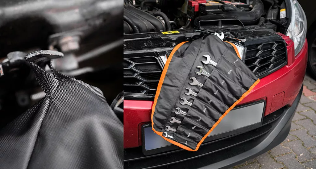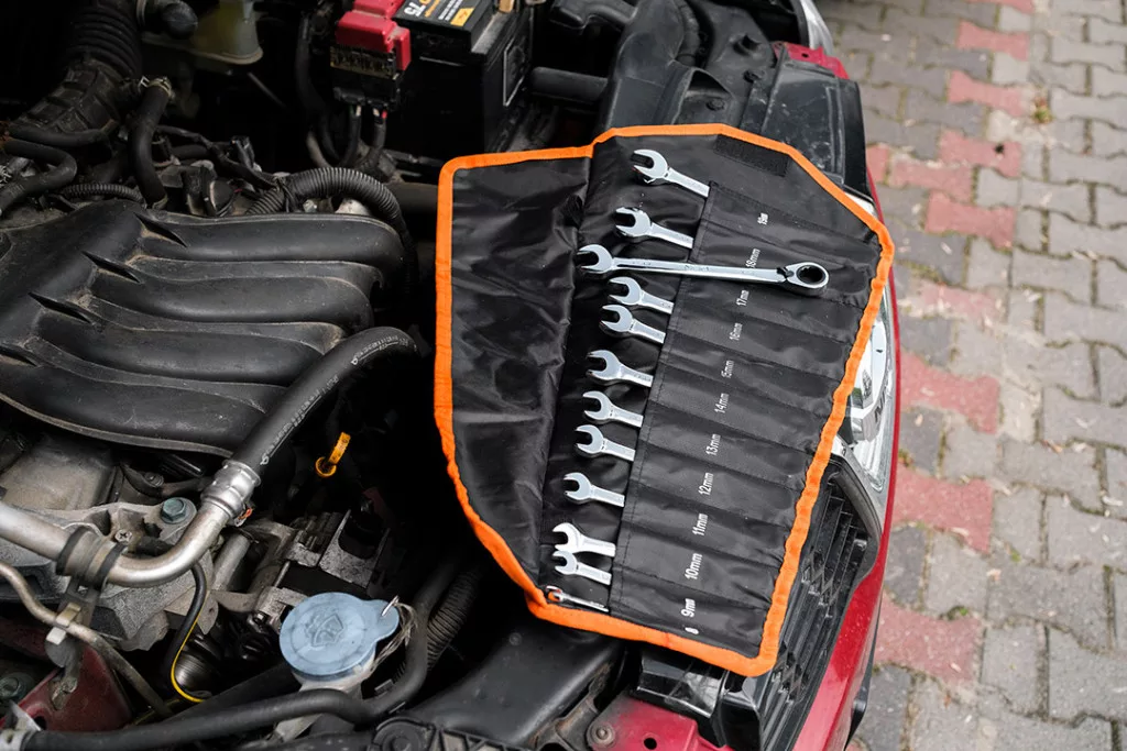NEO racsnis csillag-villáskulcs készlet, 12 darabos, 8-19 mm, gyöngyvászon tok. 09-345 a NEO-tól egy professzionális kulcskészlet az alábbi méretben: 8, 9, 10, 11, 12, 12, 13, 14, 15, 16, 17, 18 és 19 mm-es méretben. A szerszámok robusztus CrV acélból készültek, és kényelmes puha tokban kínálják, amely lehetővé teszi az anyag feltekerését. A villáskulcsokat kivételes tartósság jellemzi. Igényes körülmények között is jól teljesítenek. A racsnis mechanizmusnak köszönhetően alkalmasak lesznek a nehéz feladatok elvégzésére. A NEO márkát a szakemberek számára ajánljuk.