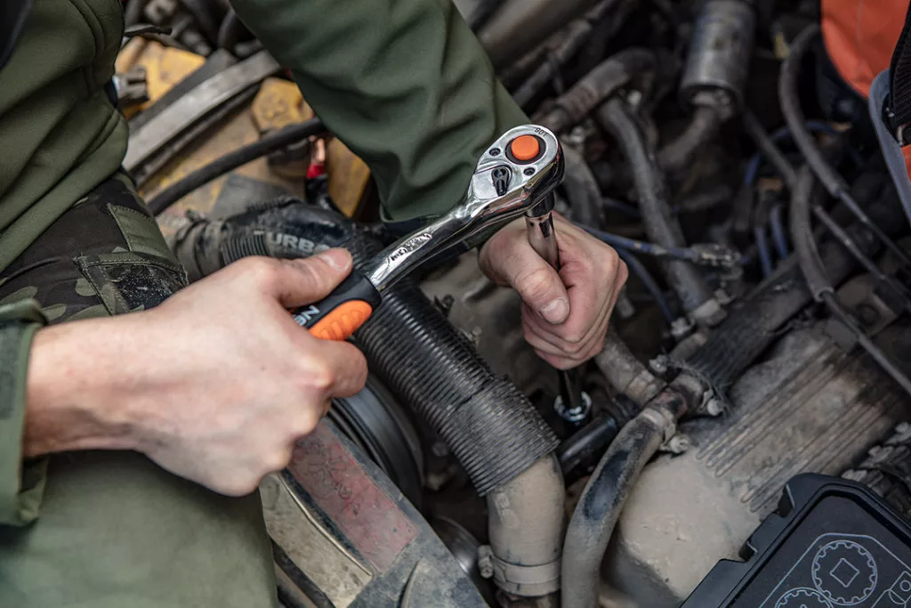 NEO 3/8" racsnis hajtókar, 200 mm hosszú, króm-vanádium acél testtel, a DIN 3122 szabvány szerint készült. 90 fogú racsni mechanizmusa rendkívül tartós króm-molibdén acélból készült, ami meghosszabbítja a szerszám élettartamát. Az ergonomikus, kettős anyagból készült fogantyú javítja a munkavégzés kényelmét. A szerszám minőségét a TÜV tanúsítvány és a 25 éves gyártói garancia igazolja. 3/8" racsnis hajtókar, 200 mm, CrV acél test, dupla anyagú zár, CrMo acélracsni szerkezet, 90 fogas, irányváltós, szerszámbetét blokkoló és kioldó rendszer, DIN3122