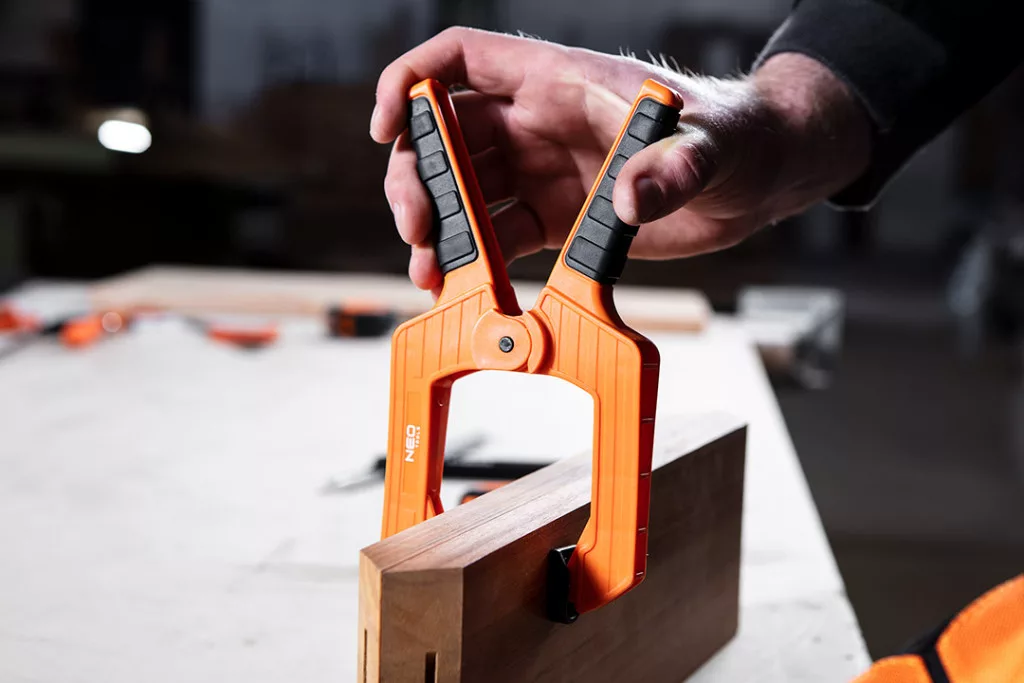 A NEO nagy teherbírású rugós szorítócsipesz egy praktikus eszköz, amely nagyban megkönnyíti a munkát az asztalos-, modellező- vagy hegesztőműhelyekben. Segítségével stabilizálni lehet az elemeket, vagy össze lehet nyomni őket, például ragasztóval. A NEO szorítócsipesz speciálisan megerősített konstrukcióval rendelkezik. Időtálló műanyagból készült, élénk színű, így könnyen megtalálható a munkahelyen. A szorítóerő eléri a 11 kg-ot.