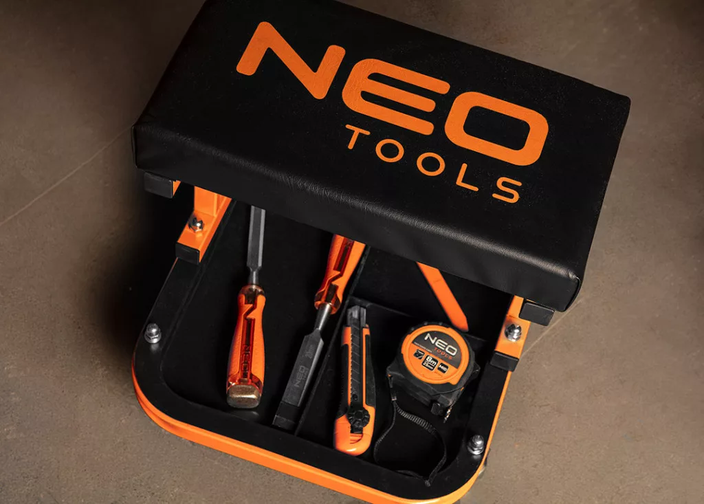 NEO TOOLS Szerelőszék, szerszámos polccal 11-604
