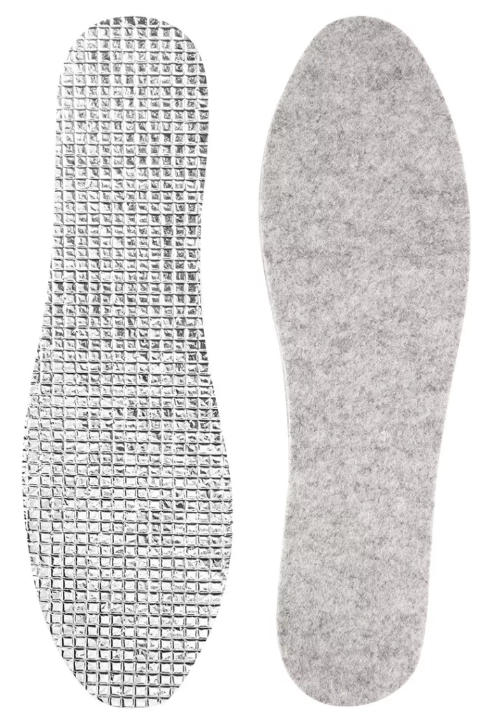 NEO 82-349 Talpbetét, hőszigetelt, nedvszívó anyag.Termo-komfor talpbetétje filcből készült, alumíniumfóliával ellátott, praktikus betét, amely védi a lábat a hidegtől és a nedvességtől. A talpbetétek enyhítik a láb talajra gyakorolt nyomását és csökkentik a láb túlzott fáradtságát. Alkalmasak munka- és egyéb cipőkhöz, valamint mindennapi viselethez egyaránt.