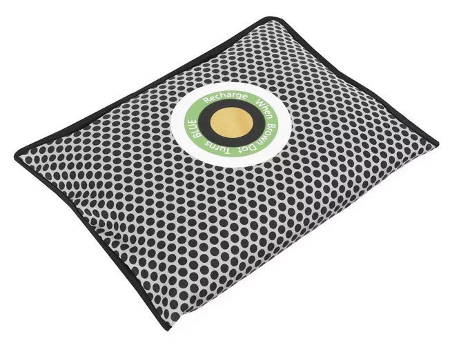 • KÖNNYŰ HASZNÁLAT –a páramentesítő közepén található akék páratartalom-jelző.Haszínenarancssárga, az azt jelenti, hogy száraz és használatra kész. Amikor ez a színkékreváltozik, az azt jelenti, hogy nedvességgel van tele, és szárítani kell. Száríthatod például mikrohullámú sütőben, aminek következtében a benne összegyűlt nedvesség elpárolog. Száradás után az indikátor színe narancssárgára változik, ami azt jelenti, hogy használatra kész.