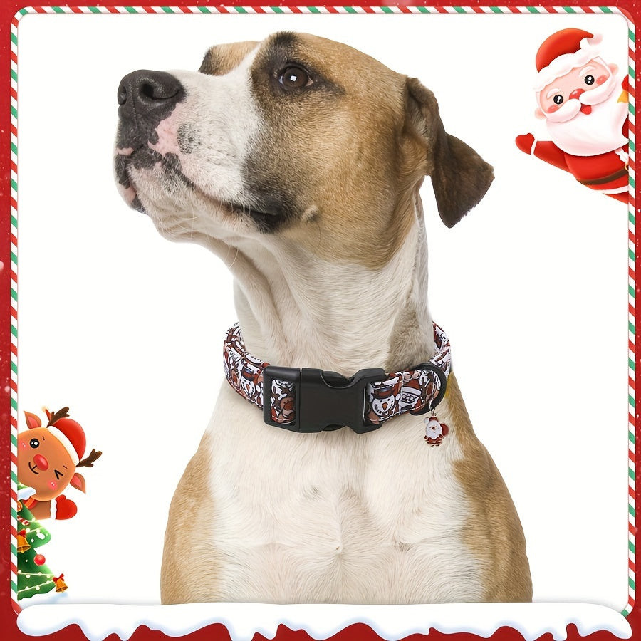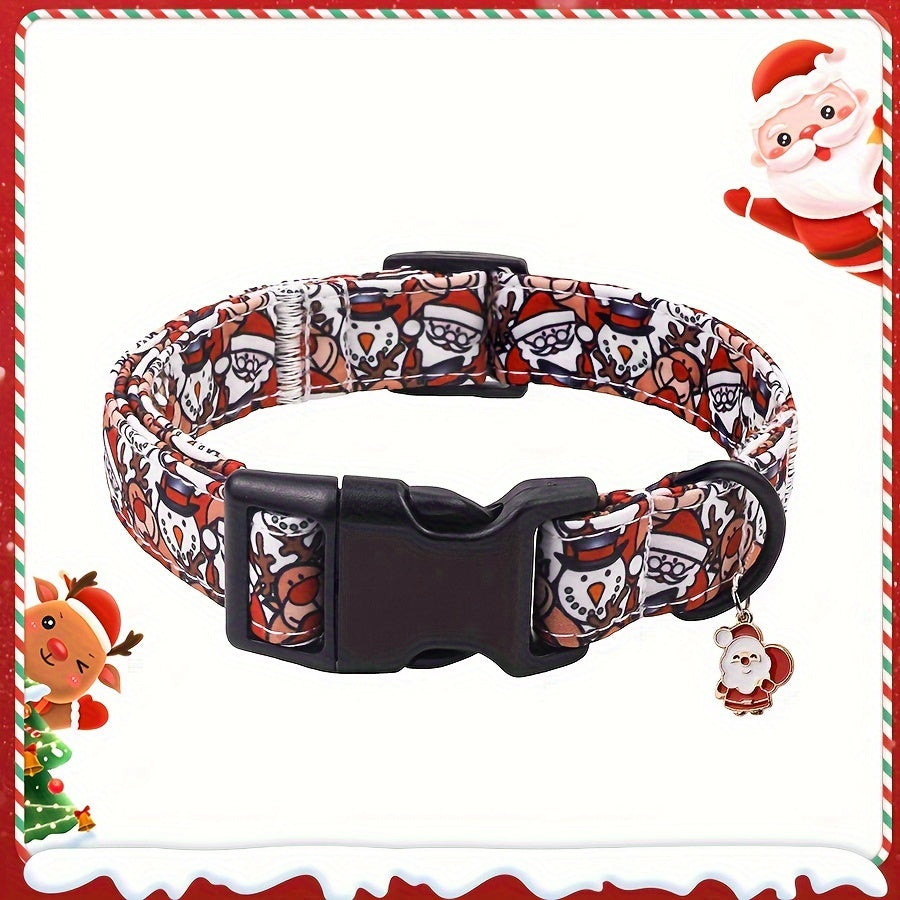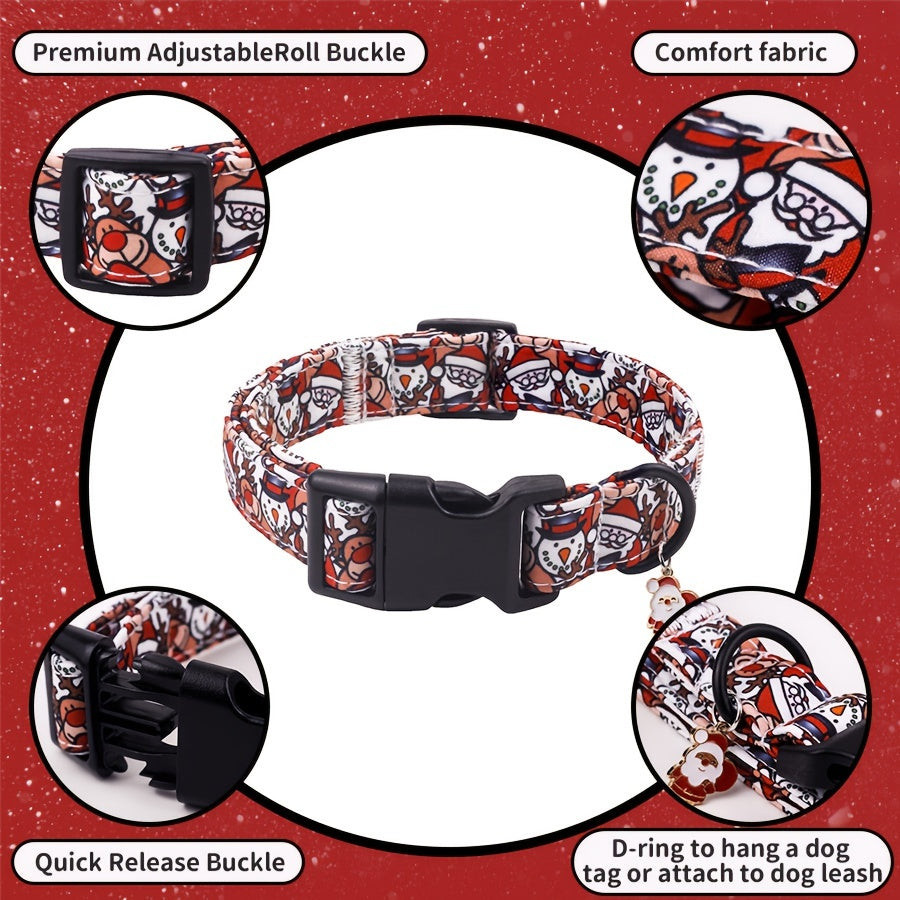 Piros Karácsonyi Kutyanyakörv Mikulás, Rénszarvas és Hóember Mintával