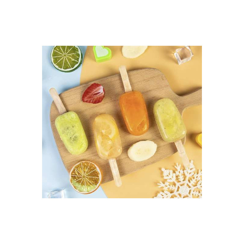 A csomagban 50 darab fa jégkrémpálcika is található, így azonnal nekiállhatsz a jégkrémkészítésnek. A formák végén lévő lyukakba könnyedén behelyezheted a pálcikákat, így stabilan tartják majd a jégkrémet.