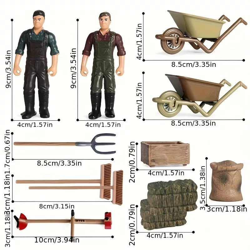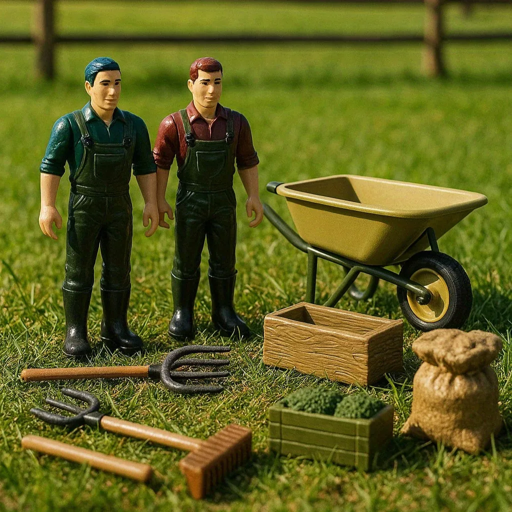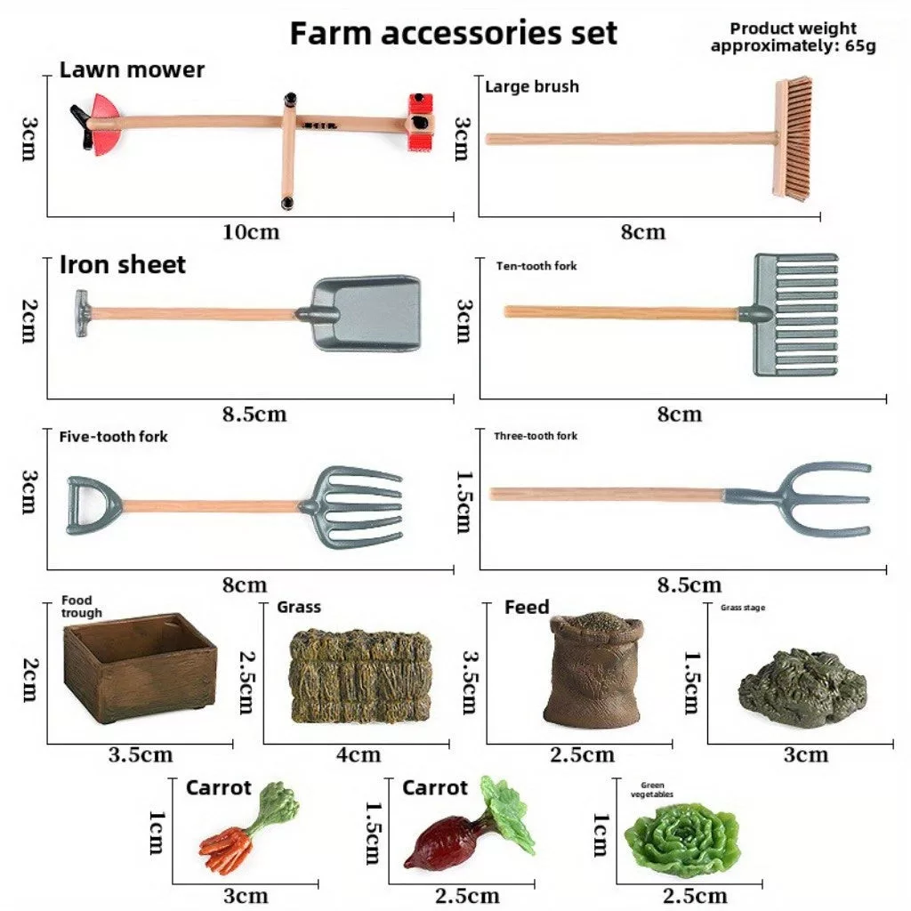 (Kiegészítők): A szett különböző állatfigurákkal és növényekkel érkezik, hogy a gyerekek teljes mértékben beleélhessék magukat a gazdasági szerepjátékba.