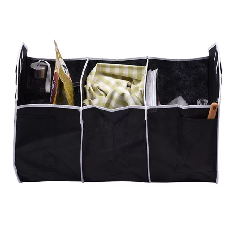 Nagy és praktikus autószervező. Egy tökéletes táska rekeszekkel, amelyben különféle hasznos dolgokat tarthatsz, például működési folyadékokat, eszközöket vagy kisebb vásárlásokat. Biztosítja, hogy mindig megtaláld a legfontosabb dolgaidat, segít rendszerezett maradni! Megakadályozza, hogy kisebb tárgyak szétessenek a csomagtérben vezetés közben!