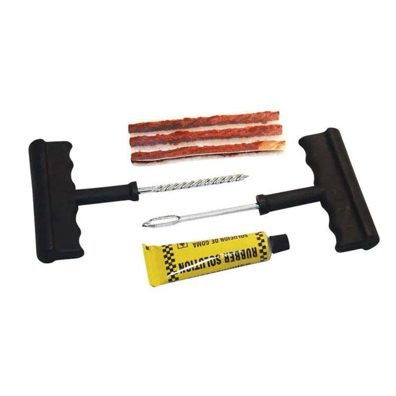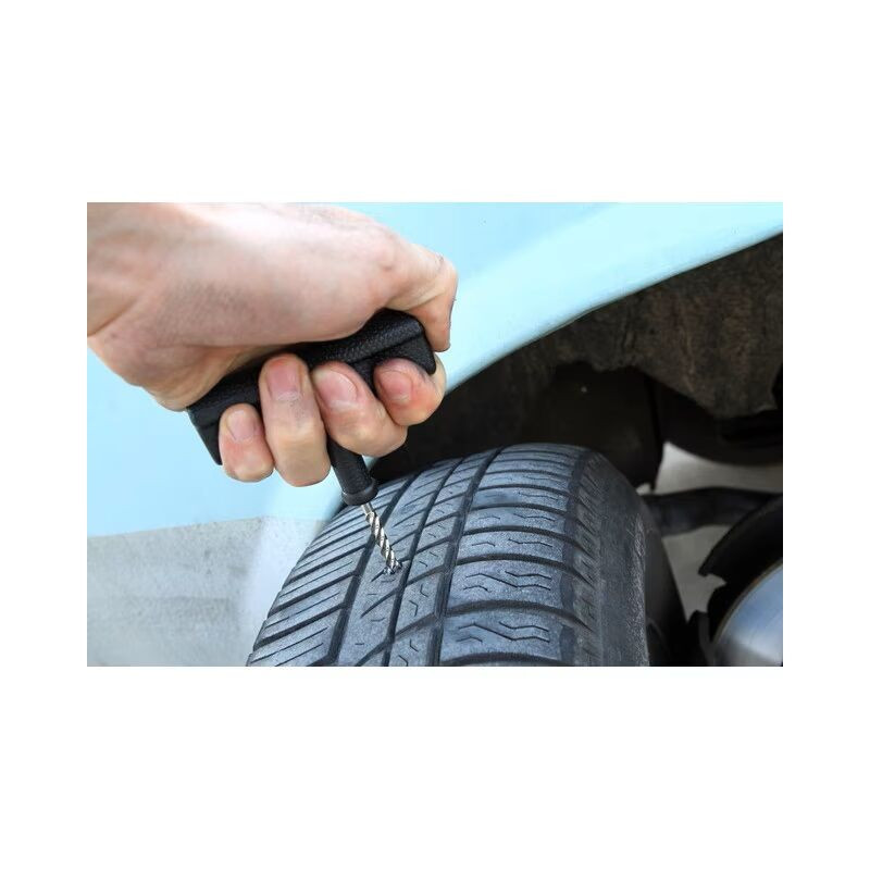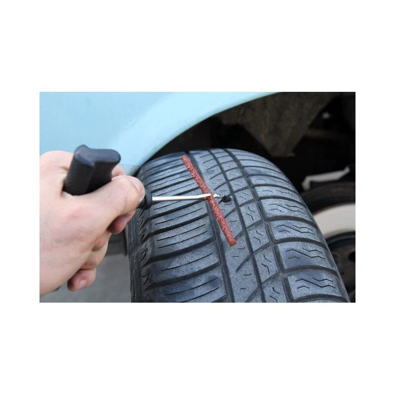 Tökéletesen alkalmazható készlet tömlő nélküli gumiabroncsok javításához. Érdemes mindig tartani a csomagtartóban egy készlettel, hiszen bármikor nagy szükség lehet rá! Akár az út szélén is meg lehet vele javítani az abroncsot, szükség esetén a kerék leszerelése nélkül is. Keresse meg pontosan a lyuk helyét és oldja meg a problémát pillanatok alatt!  A készlet három speciális gumizsinórt tartalmaz, amelyek segítségével a perforációk záródnak; a tömítéssel és a guminyomás segítségével a perforációk kellően jól lezáródnak, így az utazás biztonságosan folytatható. A termék hatékony és könnyen használható.