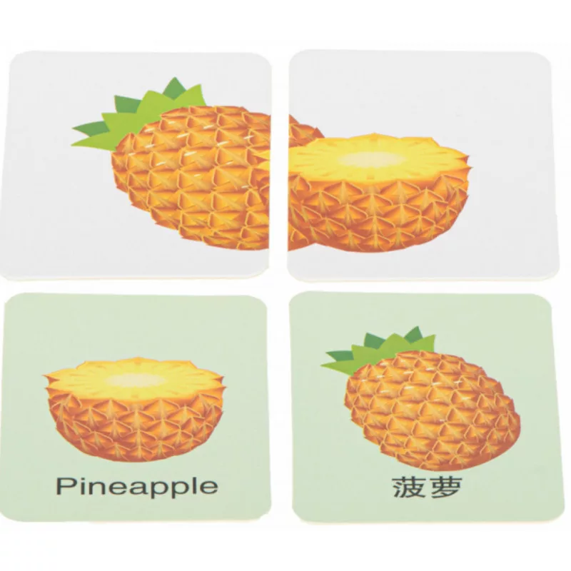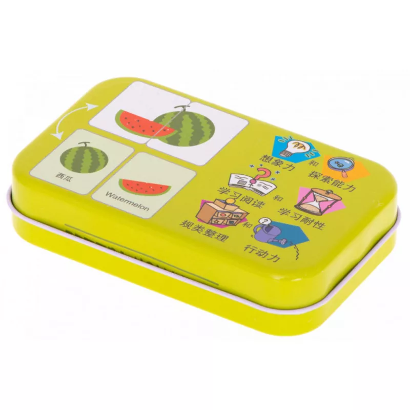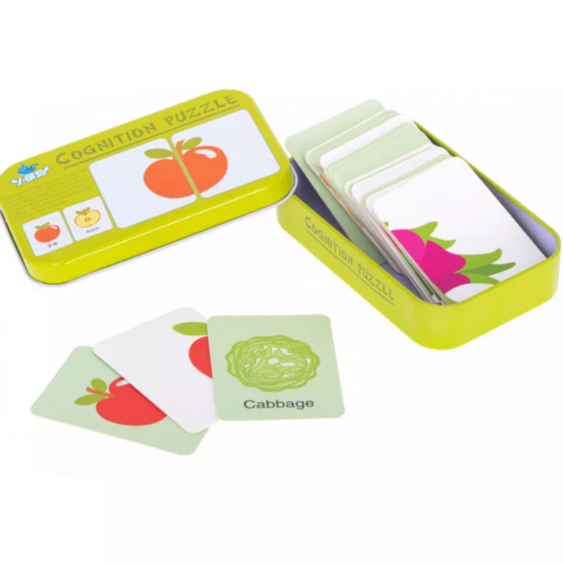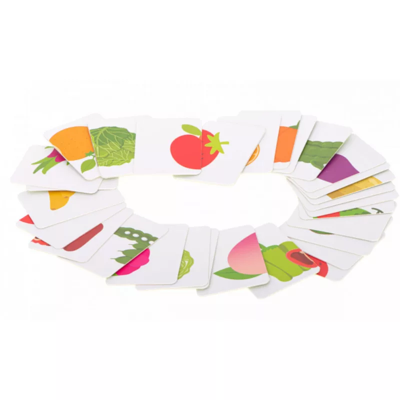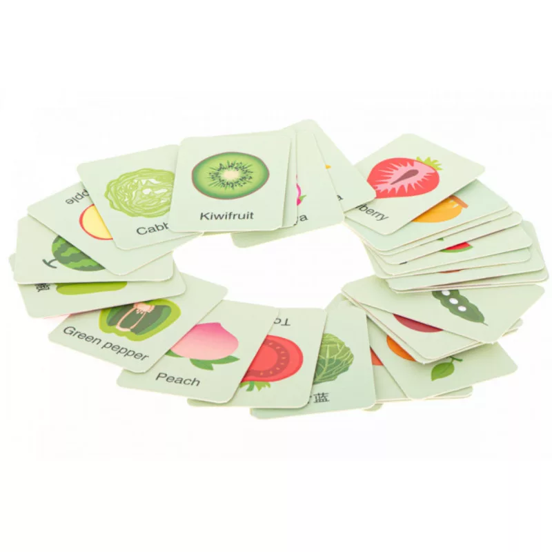 A színes kártyákból álló játék, aminek segítségével gyermeked megismerheti a zöldségeket, gyümölcsöket. Arra ösztönzi gyermeked, hogy fedezze fel a világot. A kártyák angol és kínai feliratokkal rendelkeznek,  így tökéletesek az idegen nyelvek tanulásához.