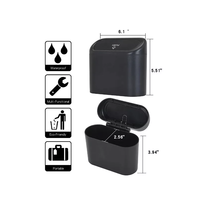 Van egy megoldásunk számodra! Ez az erős műanyagból készült hordozható akasztós autós szemeteskuka tökéletes választás, amellyel könnyedén összegyűjtheted és ürítheted a szemetet a kocsidból. Vízálló és könnyen tisztítható. Felakasztása nagyon egyszerű. Minimális helyet foglal el.