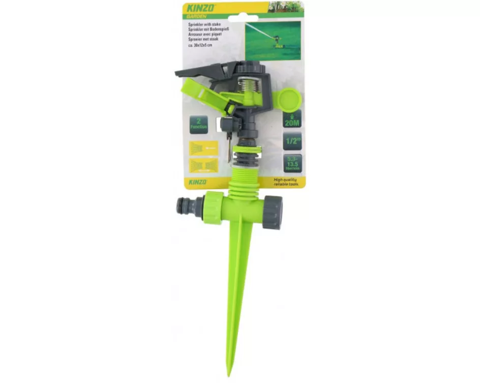 Bemutatjuk a Kinzo szektoros öntözőfejet, a tökéletes megoldást a kerti öntözési igények kielégítésére. Ez az innovatív locsolófej MA műanyagból készült, és 12x5x30 cm-es méretekkel rendelkezik, így bármilyen 1/2"-os vízellátással kompatibilis. A 0-6 bar teljesítménytartományban két funkciót kínál, és zöld-fekete színben kapható. Kb. 20 m-es távot tud lefedni, így ideális minden öntözési igényhez.