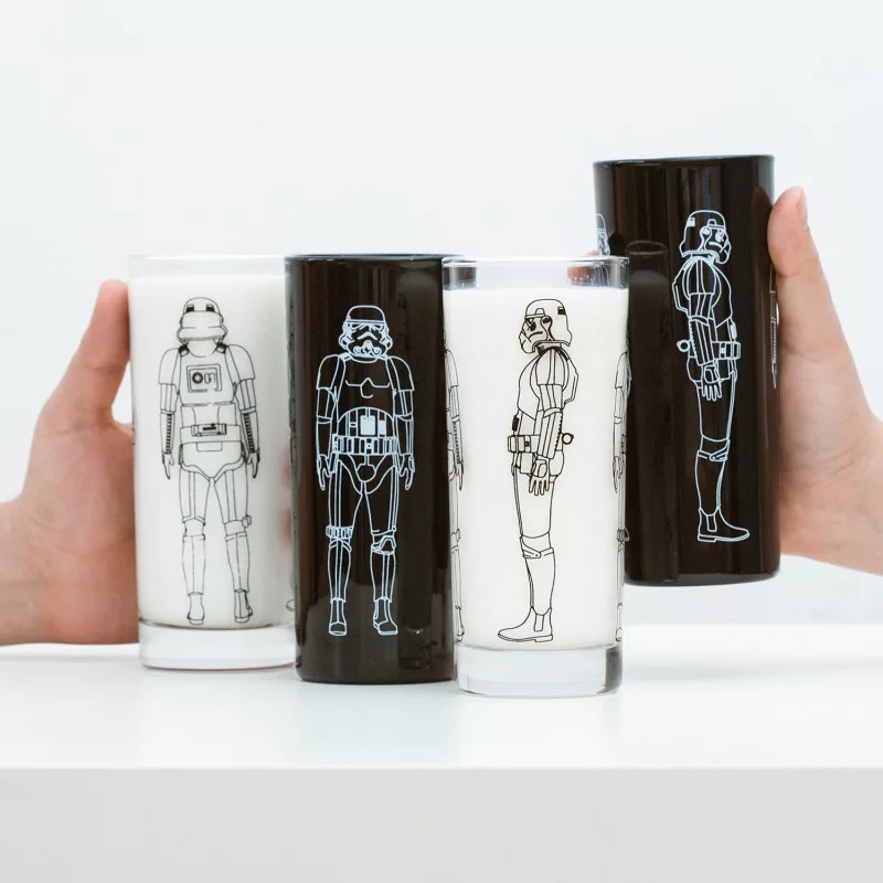 Ebben a készletben 4 darab rohamosztagos pohár található: 2 fekete és 2 átlátszó. A készlet tökéletes ajándéknak is, vagy akkor, ha sosincs elég poharad. A poharak tartalma körülbelül 300 ml. Mosogatógépben nem moshatók!