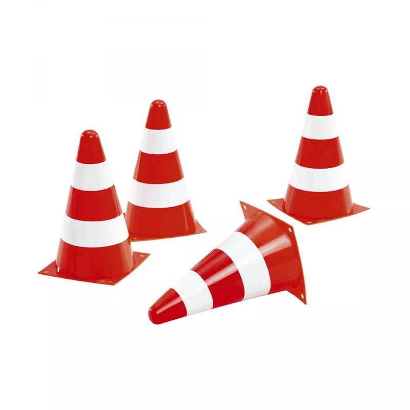 Rolly Toys márkájú, műanyagból készült útjelző bója szett. A szett 4 darab bóját tartalmaz. A bóják mérete egyenként 23x13,5x13,5 cm. 3 éves kortól ajánljuk.