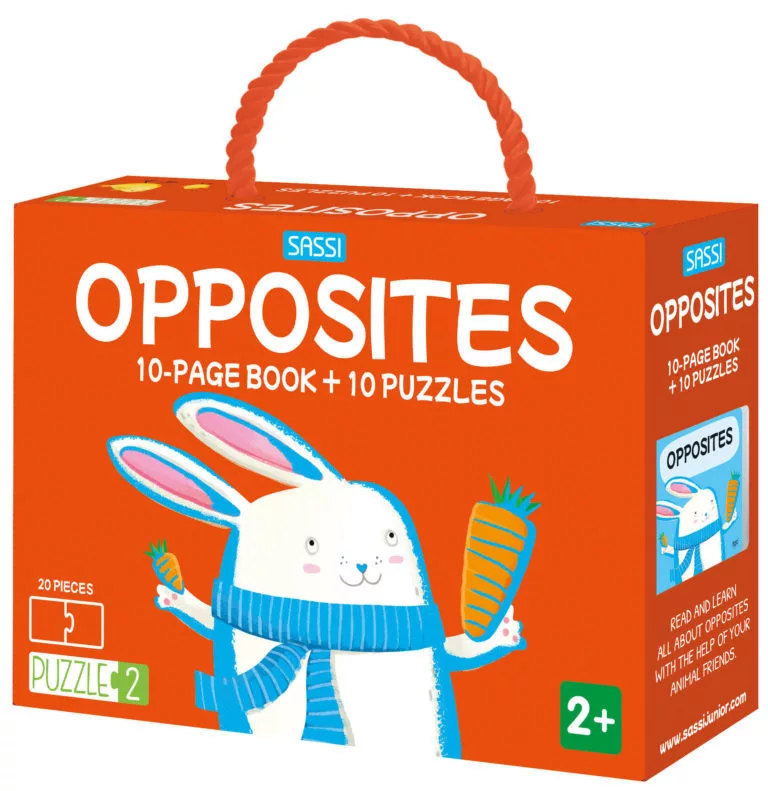 Ezzel a Sassi játszva oktató sorozattal könnyedén, szórakoztató módon tanulhatja meg az első angol szavait! A fejlesztő játéknak köszönhetően játék közben tudja elsajátítani az ellentéteket, az alakokat, a számokat és a színeket. A játék tartalmaz egy 10 oldalas angol könyvet, illetve 10 rejtvényes, két darabból álló puzzle-t. A használata 2 éven felüli gyermekek számára ajánlott.