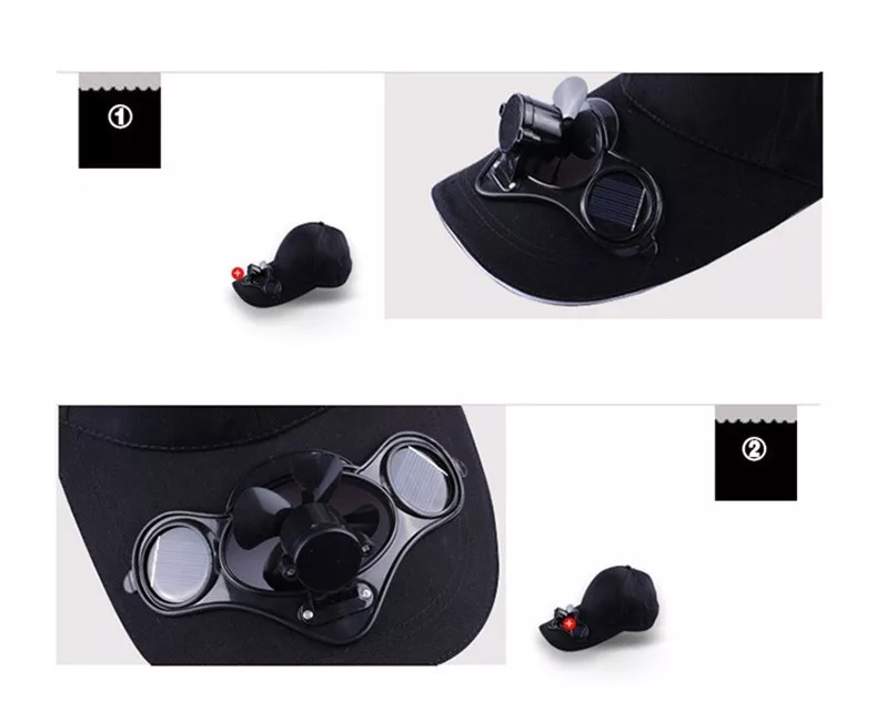 Tökéletes szabadtéri sportokhoz, mint például a strandolás vagy túrázás. Energiatakarékos megoldás, hiszen működéséhez nem szükségesek elemek. A napellenzőn található napelemek hajtják a ventilátort. A sapka mérete könnyedén állítható az egyéni igényekhez.