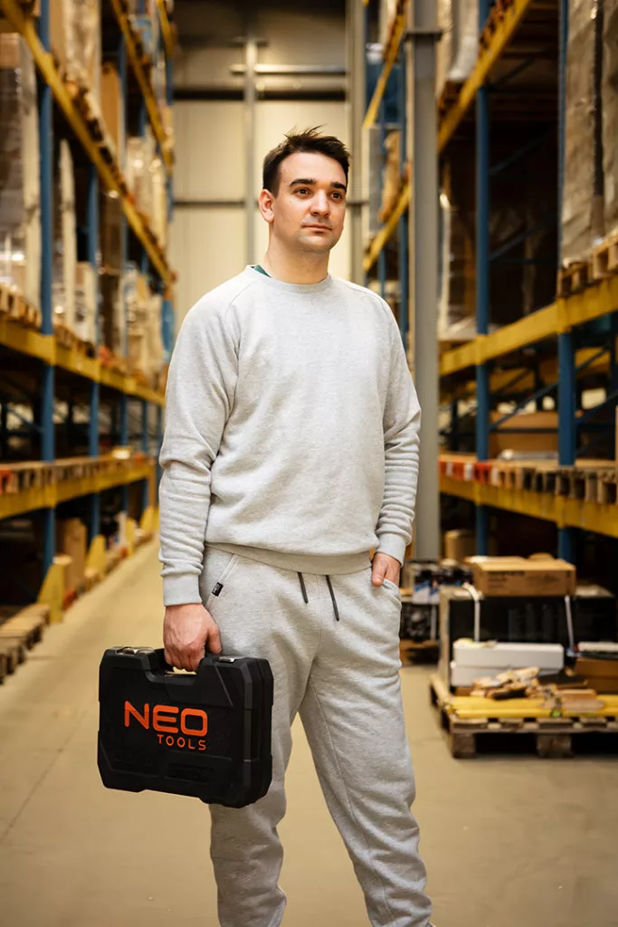 NEO TOOLS COMFORT Melegítőnadrág - Kényelem és Tartósság Egyben.Ismerje meg a NEO TOOLS COMFORT melegítőnadrágját, amely a szürke melange színével és karcolásmentes kötött anyagával a legjobb választás a mindennapi kényelem és funkcionalitás érdekében. Ez a nadrág a tökéletes társ, legyen szó szakmai vagy mindennapi feladatokról.Kiváló Anyagminőség:A COMFORT melegítőnadrág anyaga 79% pamutból, 13% poliészterből és 8% viszkózból áll, így biztosítva a puhaságot és a tartósságot. A 320 g/m² súlyú szövet kiváló hőszigetelést és kényelmet nyújt egész nap.Ergonomikus Kialakítás:A nadrág puha elasztikus derékpánttal és húzózsinórral van ellátva a tökéletes illeszkedés érdekében. Az elöl található átlós zsebek és a hátul lévő lapos zseb praktikus tárolási lehetőségeket biztosítanak minden szükséges eszköz számára.Stílusos Részletek:A NEO TOOLS nadrág névtáblával, jacquard címkével és szabott szabásvonallal rendelkezik, amelyek kiemelik a minőséget és a dizájnt. Ezek a részletek nemcsak stílusos megjelenést biztosítanak, hanem növelik a nadrág tartósságát is.Biztonsági és Minőségi Tanúsítványok:A NEO TOOLS saját márkás terméke CE tanúsítvánnyal rendelkezik, ami garancia a minőségre és a biztonságra. Legyen szó szakmai munkáról vagy mindennapi tevékenységekről, ez a melegítőnadrág minden helyzetben megállja a helyét.Válassza a NEO TOOLS COMFORT melegítőnadrágot, és tapasztalja meg a kényelmet és tartósságot egy új szinten!