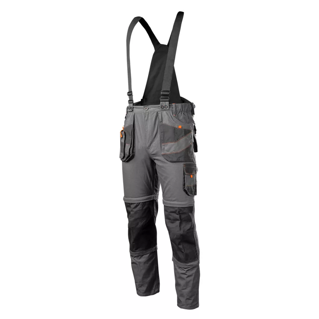 A 100% pamut selyemszövetből készült NEO 6 az 1-ben kantáros munkanadrág kényelmes,tartós nadrág mindenféle munkához, mind a professzionális, mind az otthoni munkához. A dupla cipzárak használatának köszönhetően a nadrág 3 hosszra rövidíthető: rövid és hosszú, halásznadrág, valamint nadrágtartóval vagy anélkül. A nadrág 6 különböző módon viselhető. A különböző szerszámok elhelyezésére a nadrág többfunkciós zsebekkel van ellátva.Térdvédők behelyezésére is van lehetőség. A termék minőségét az EN ISO 13688:2013 szabványnak való megfelelést tanúsító CE tanúsítvány igazolja. XS-XXXL méretben kapható.
