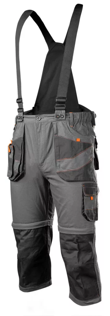 A 100% pamut selyemszövetből készült NEO 6 az 1-ben kantáros munkanadrág kényelmes,tartós nadrág mindenféle munkához, mind a professzionális, mind az otthoni munkához. A dupla cipzárak használatának köszönhetően a nadrág 3 hosszra rövidíthető: rövid és hosszú, halásznadrág, valamint nadrágtartóval vagy anélkül. A nadrág 6 különböző módon viselhető. A különböző szerszámok elhelyezésére a nadrág többfunkciós zsebekkel van ellátva.Térdvédők behelyezésére is van lehetőség. A termék minőségét az EN ISO 13688:2013 szabványnak való megfelelést tanúsító CE tanúsítvány igazolja. XS-XXXL méretben kapható.