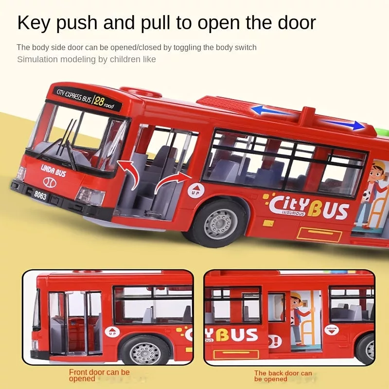30 cm-es Dupla Ajtós Játékbusz Fénnyel és Hanggal