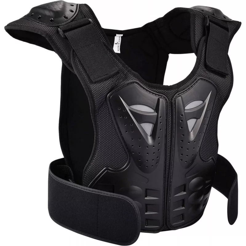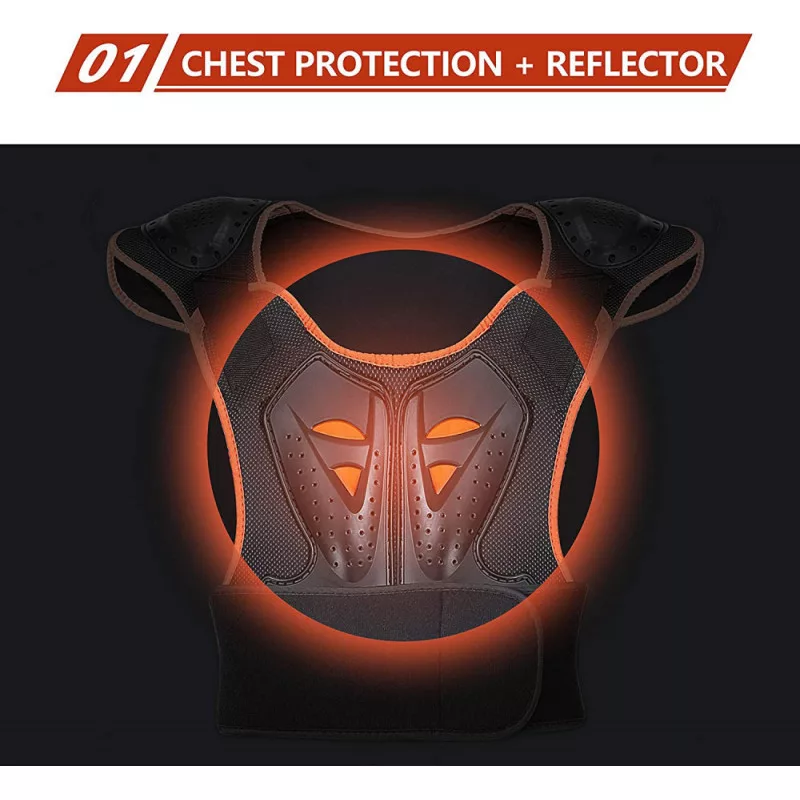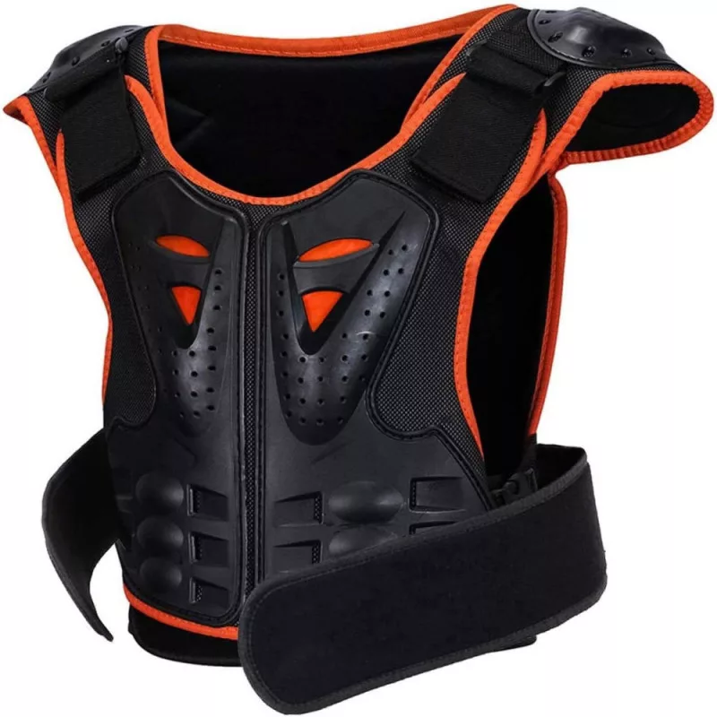 Ez a gyermek motorkerékpár mellény mellkasvédő a tökéletes választás a gyermekek számára, akik szabadtéri sportokat űznek, és biztonságban akarnak maradni. A mellény protektorai egy nagyon rugalmas és légáteresztő sztreccs nejlonhálóra vannak helyezve, amely lehetővé teszi a gyerekek számára a kényelmes viseletet, miközben biztosítják a megfelelő védelmet. A mellény hátsó része hát- / gerincprotektorral van ellátva, amely extra védelmet biztosít a gerincnek és a hátának.