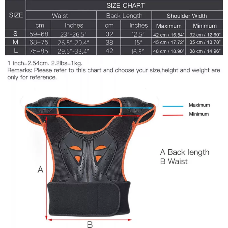 Összefoglalva, ez a gyermek motorkerékpár mellény mellkasvédő ideális választás a gyermekek számára, akik szeretnek szabadtéri sportokat űzni. A rugalmas anyag és az állítható veseöv biztosítja a kényelmet és a biztonságot, míg az erős PVC borítás és a protektorok a megfelelő védelmet nyújtják. A mellény tökéletesen alkalmas gyermekek számára, akik a terepmotorozás, motorozás, síelés, snowboardozás és más szabadtéri sportok szerelmesei. Válassza ezt a védőmellényt, hogy megóvja a gyermekek testét a szabadtéri sportolás során!