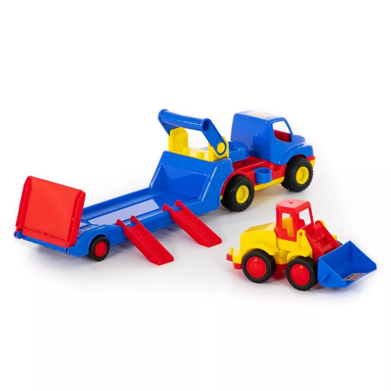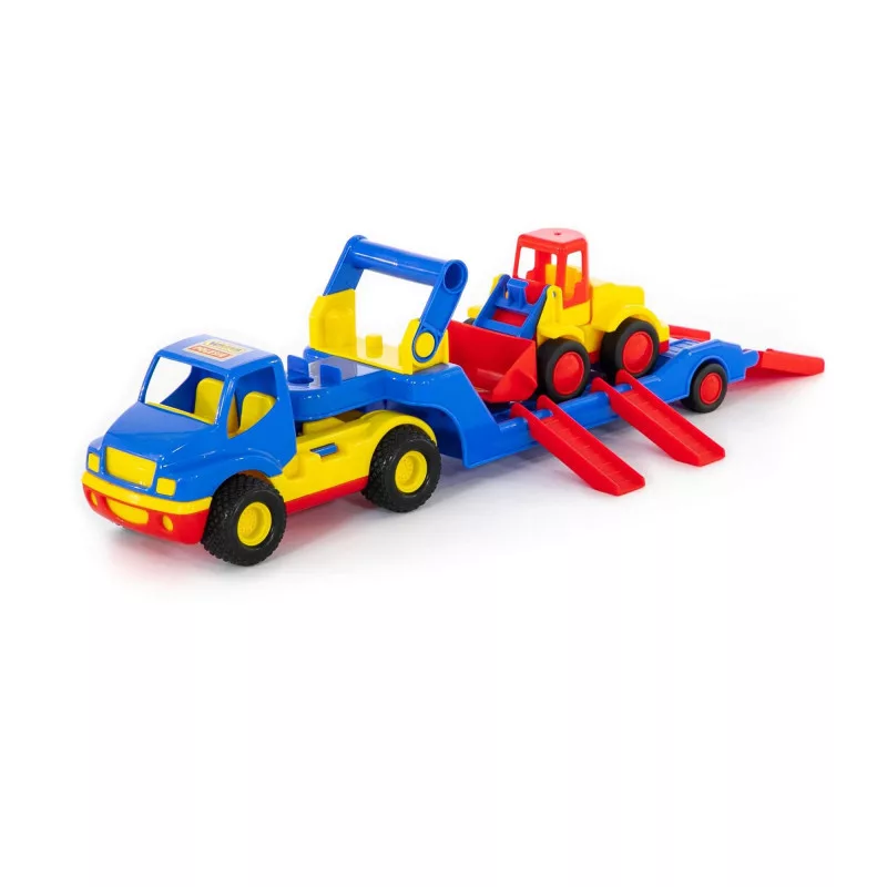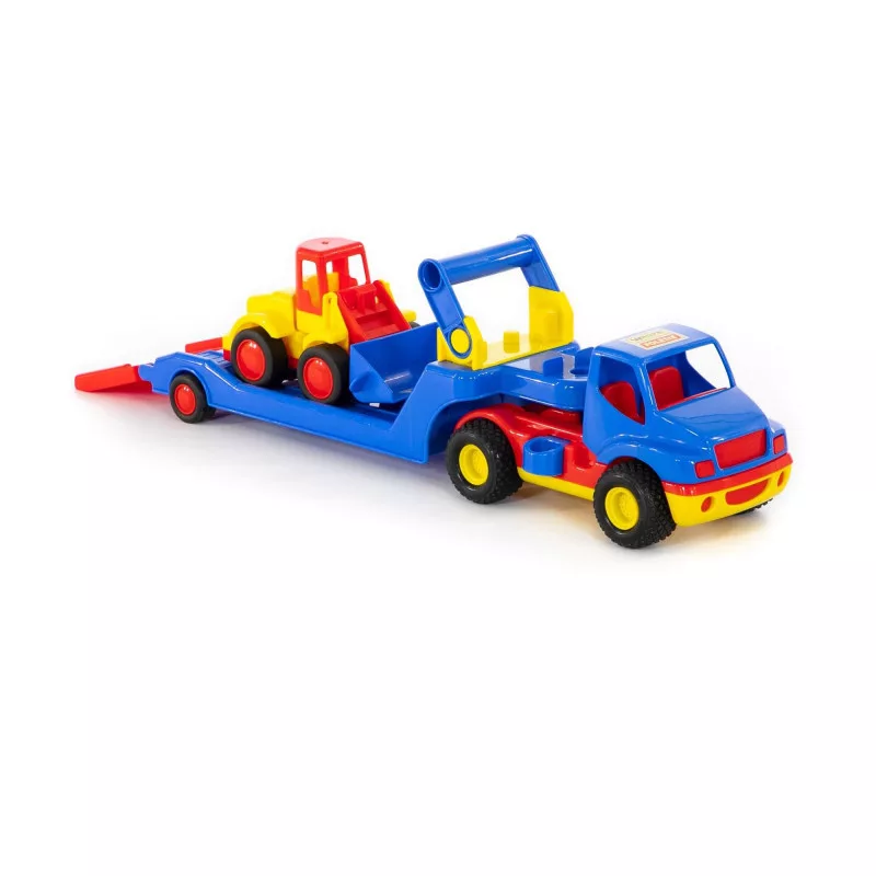 Válaszd három fémtengelyes, autószállító trélerünket, melyet garantáltan imádni fog! Strapabíró műanyagból készült, mely ellenáll a játék hevében ért koccanásoknak, a gumikerekek pedig biztosítják, hogy ne sérüljön a lakás padlója, vagy a bútorok felülete.